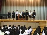 本日午前、後期生徒会役員、専門委員長、学級代表の任命式が行われました。