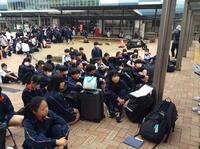 2日間にわたって行われた野外教室の報告です。熱海駅での出発式、沼津深海水族館、昼食(水と緑の社公園)、桃沢野外活動センターの到着の様子です。
