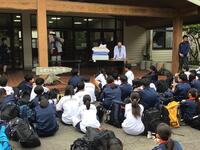 今日から2年生は、三島の箱根の里自然の家で自然教室が始まりました。2日間の様子を随時知らせします。まずは入所式の様子です。